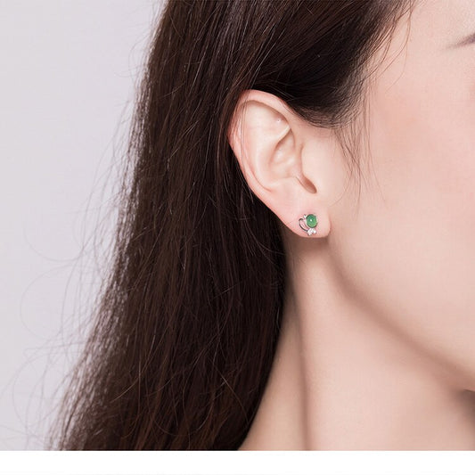 Green Stone Kitty Studs